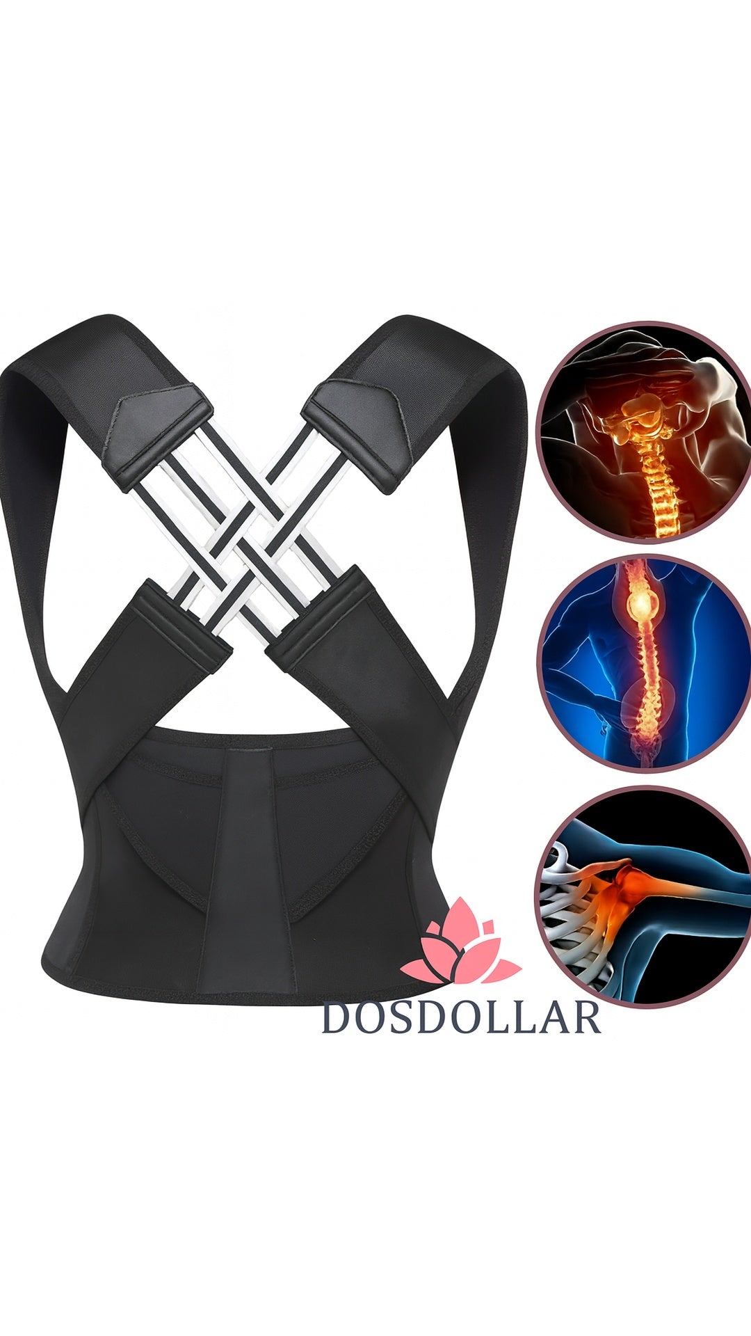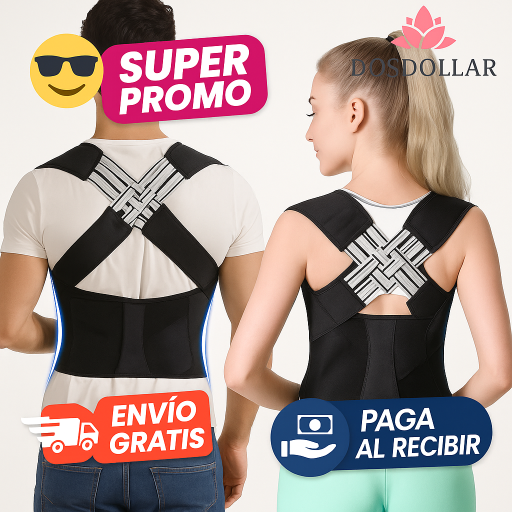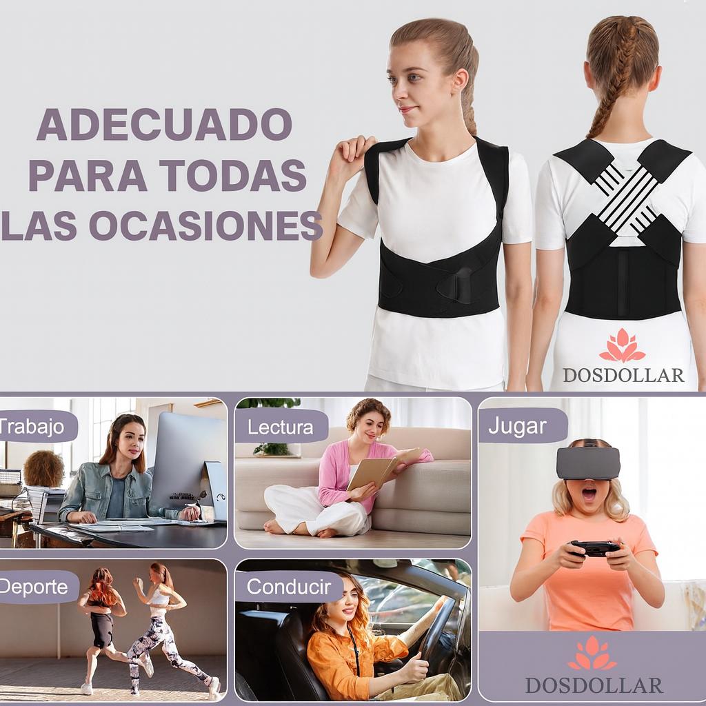 Diseñado con tecnología de soporte ergonómico y tiras cruzadas ajustables que alinean tu espalda, cuello y hombros. Su diseño unisex y liviano te brinda comodidad durante todo el día — ¡incluso bajo la ropa!