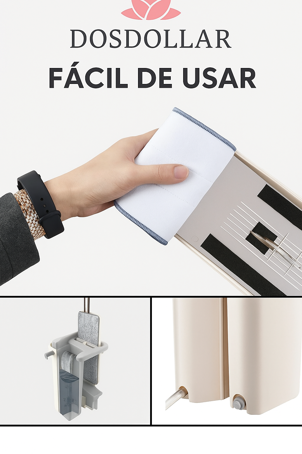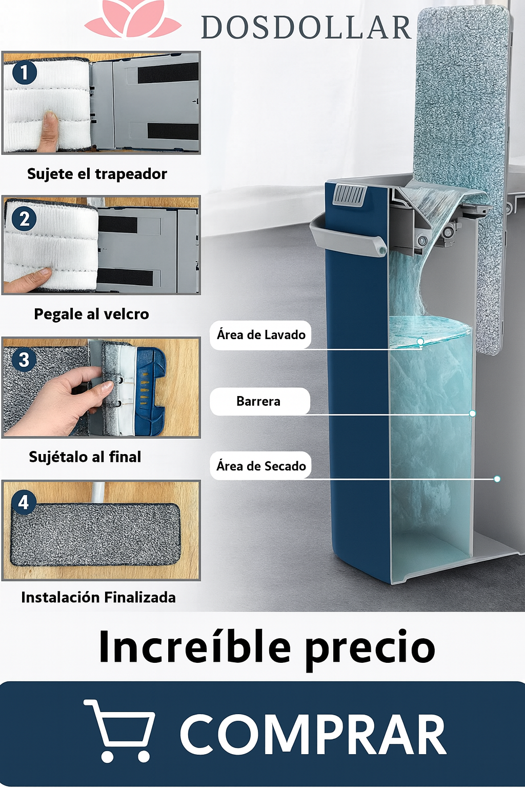 Solo inserta la mopa, sube y baja… ¡y listo! El sistema automático exprime el exceso de agua sin que tengas que tocarla. Cómodo, rápido y perfecto para limpieza diaria.